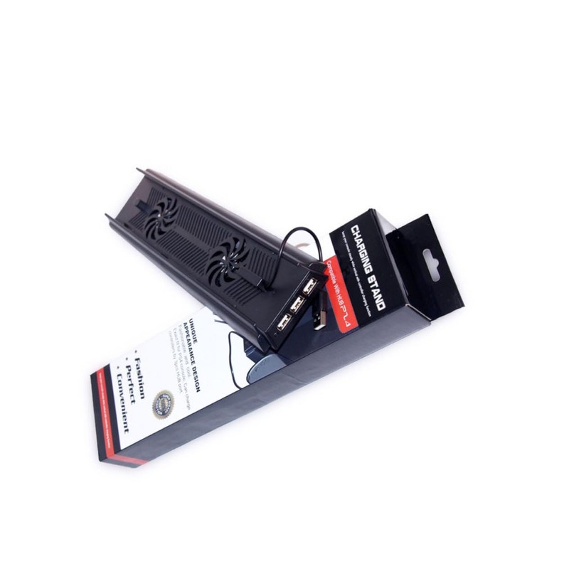 - Fan base for 4-- charging station with 2 charger ports to charge both of your game controller simultaneously.