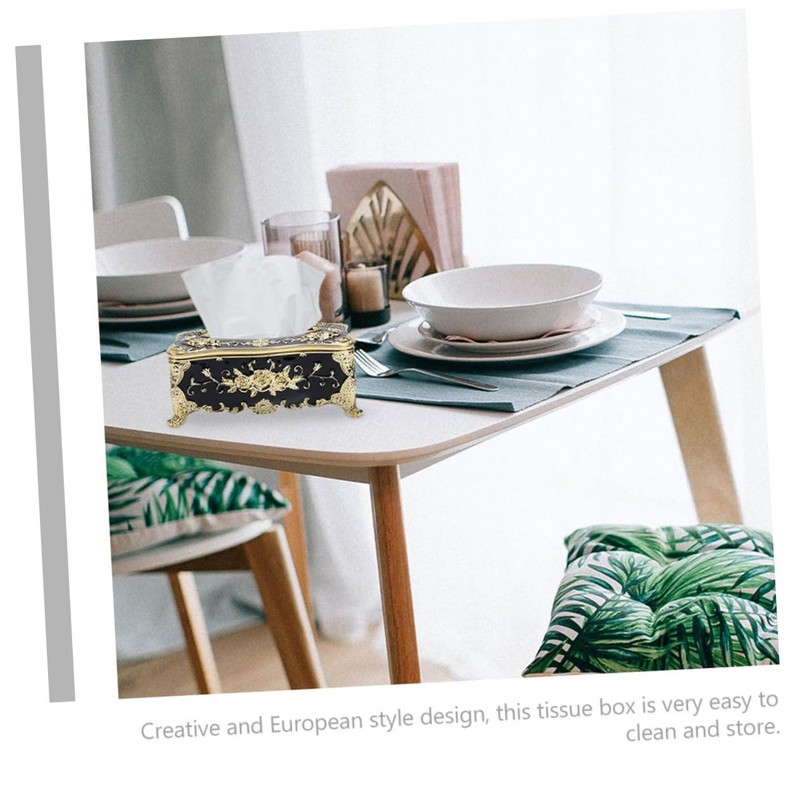 KONTONTY Stylish Black Rose Tissue Box Heavy Duty Decorative Paper Towel Case Home Decor