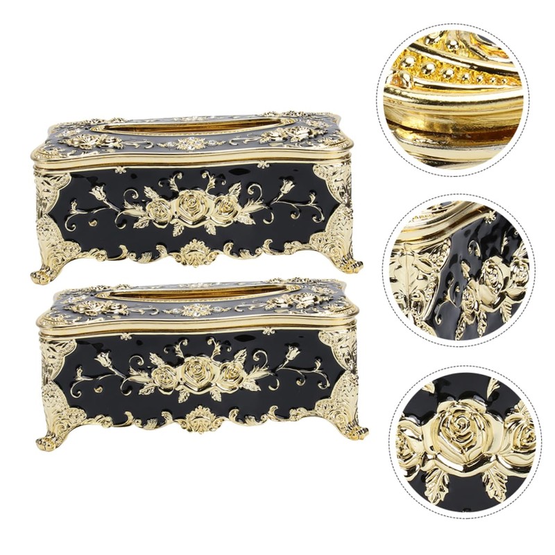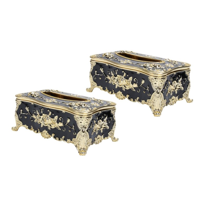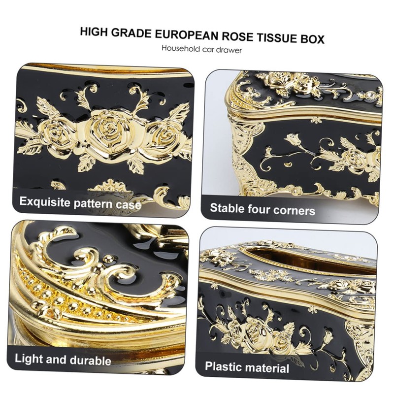 KONTONTY Stylish Black Rose Tissue Box Heavy Duty Decorative Paper Towel Case Home Decor