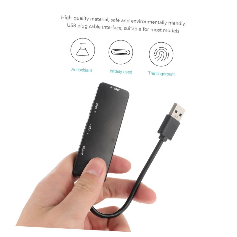 4- in- 1 Hub Adapter This is a USB hub, which is made of ABS material, for lasting use.Expansion Transfer Adapters 4-in-1 multifunctional docking station to solve the lacking interface problem of your notebook computer.multiport USB hub This USB hub is wear-resistant, anti- , good hand feeling