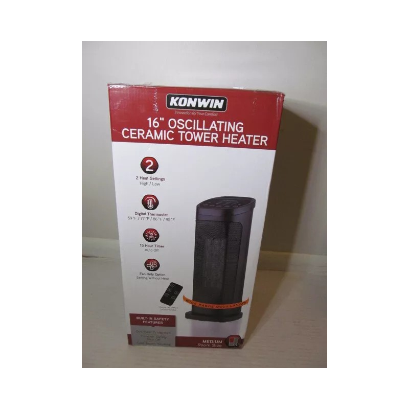 Konwin 16" Oscillating Ceramic Tower Heater for Medium Room Size, NSBK-150SK57R