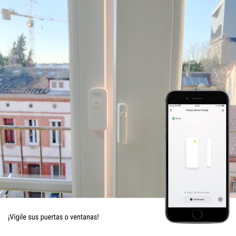 Konyks Senso Charge 2, WLAN-Öffnungsmelder mit wiederaufladbarem Akku, Akkulaufzeit bis zu 1 Jahr, Benachrichtigungen auf Smartphone, einfache Automatisierung, kompatibel mit Alexa & Google Home, 2