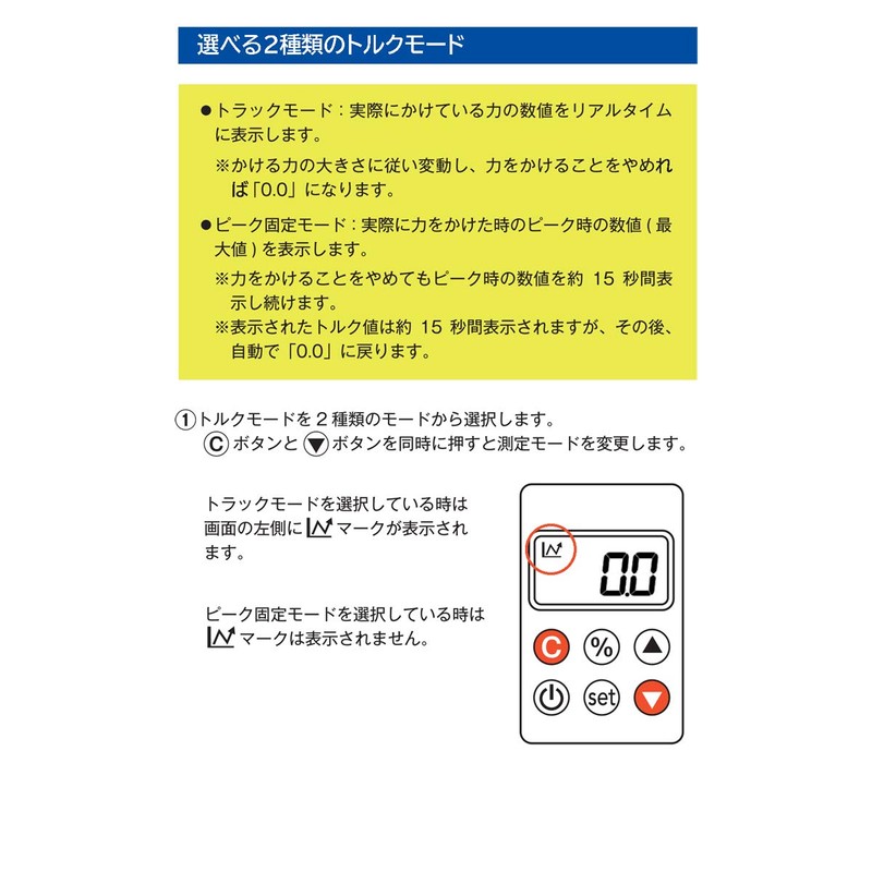 - Digital display for tightening torque at a glance. Lights and sounds when set torque is reached. Pre-notification function to prevent overtorque Two measuring modes: (1) Peak fixed mode; (2) Track mode;