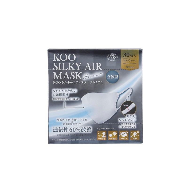 [クー・メディカル・ジャパン] KOOシルキーエアマスクPREMIUM 立体型(3Dタイプ) 30枚入り シルキー耳ひも ふつうサイズ 息苦しさ60%軽減(当社比)