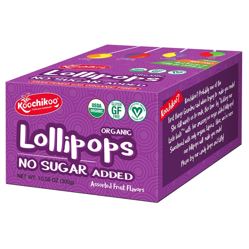 Koochikoo Sugar Free Organic Lollipop Display Box, 50 CT