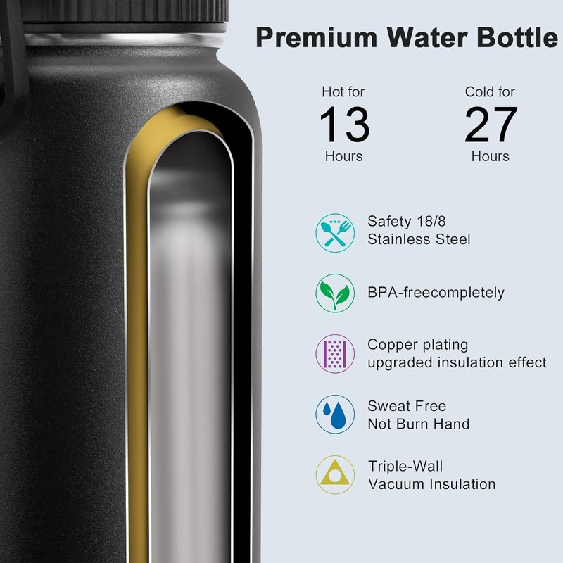 - 【Unique Gift Set】Most of the damage to the water bottle is caused by falling from a height. We provide a high-quality silicone boot to protect the bottom of the bottle from dents and scratches caused by collision with the tabletop or falling from a high altitude