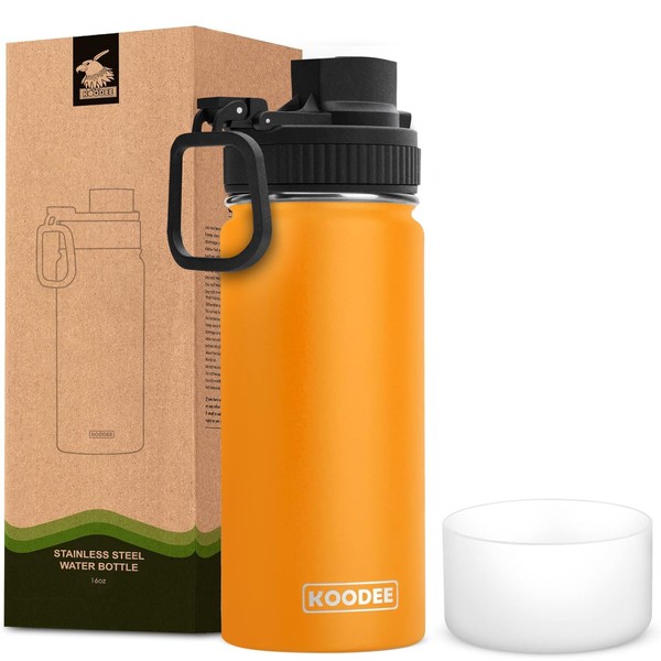 koodee Water Bottle with Straw-16 oz Stainless Steel Double Wall Vacuum Insulated Water Flask Metal Sports Water Bottle for School (Mango Yellow)