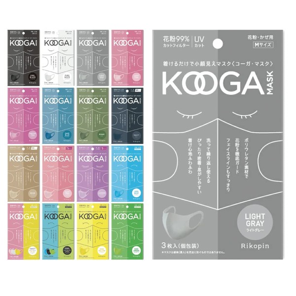 KOOGA MASK (Medium Light Gray) Mask, Urethane Material, Sponge Mask, Washable Mask, Pollen, UV Protection, 3 Pieces, 1 Pack, M Light Gray