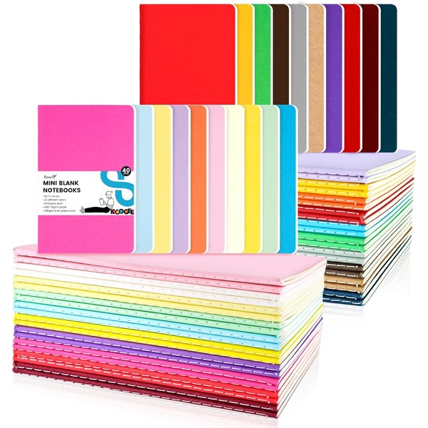 Koogel 40-Pack Mini Pocket Notebooks – Small Blank Journals in 20 Colors, 9 x 14 cm Notepads for Students, Travel, and School Supplies