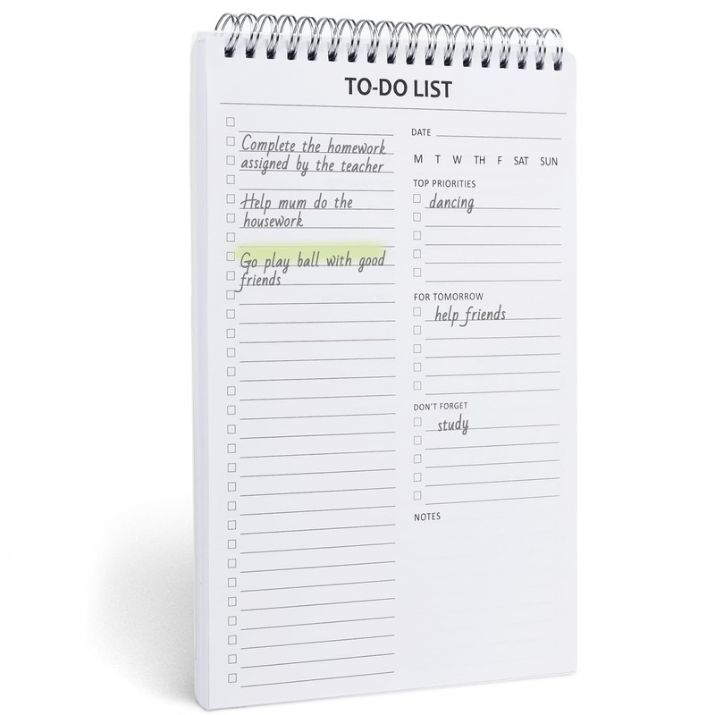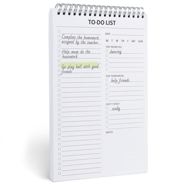 • Spiral Bound - The twin spiral binding of our to do list notepad allows you to commence a new page while retaining access to old ones for reference. This feature facilitates effortless flipping through your to-do list, and pages can be torn out as needed.