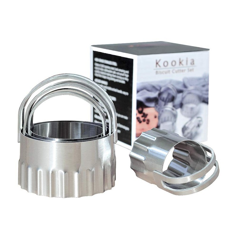 Kookia Stainless Steel Round Cookie Cutters with Fluted Edge, Professional Baking Tools Set of 4