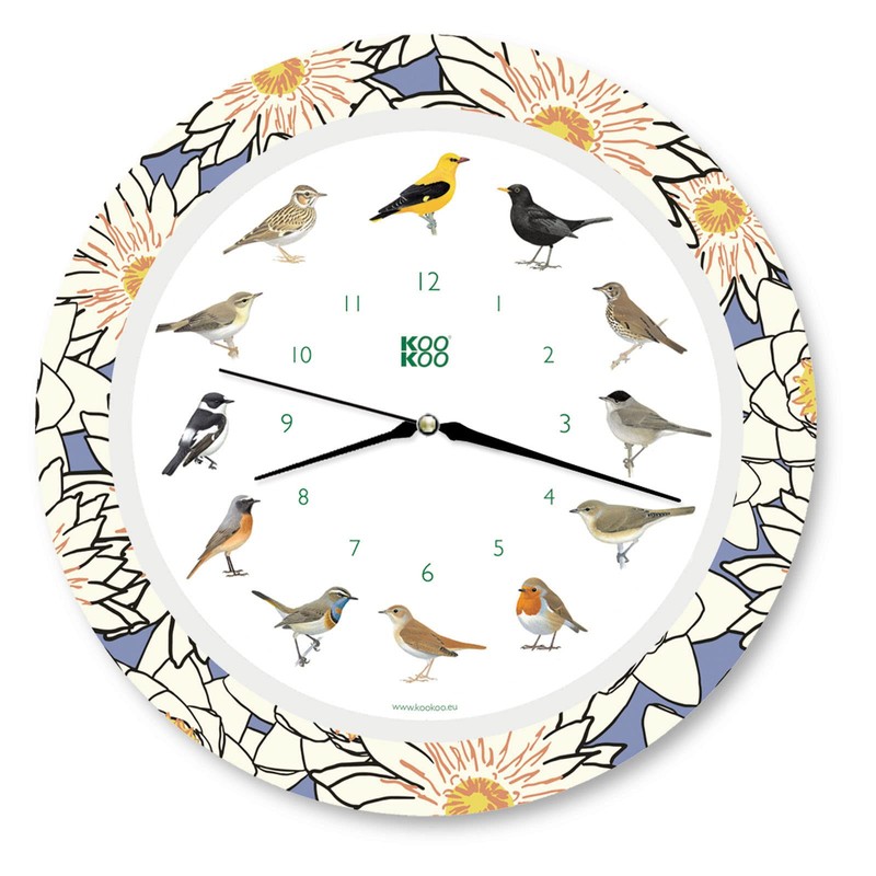 - Our classic: Singvögel (German word for “songbirds”) bird voices clock. A charming wall clock with a lovingly designed colourful clockface and beautiful illustrations by renowned bird artists.