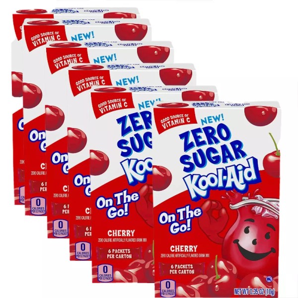 Kool-Aid 6 Boxes Kool-Aid Cherry Zero Sugar Drink Mix Singles To Go (36 Packets)
