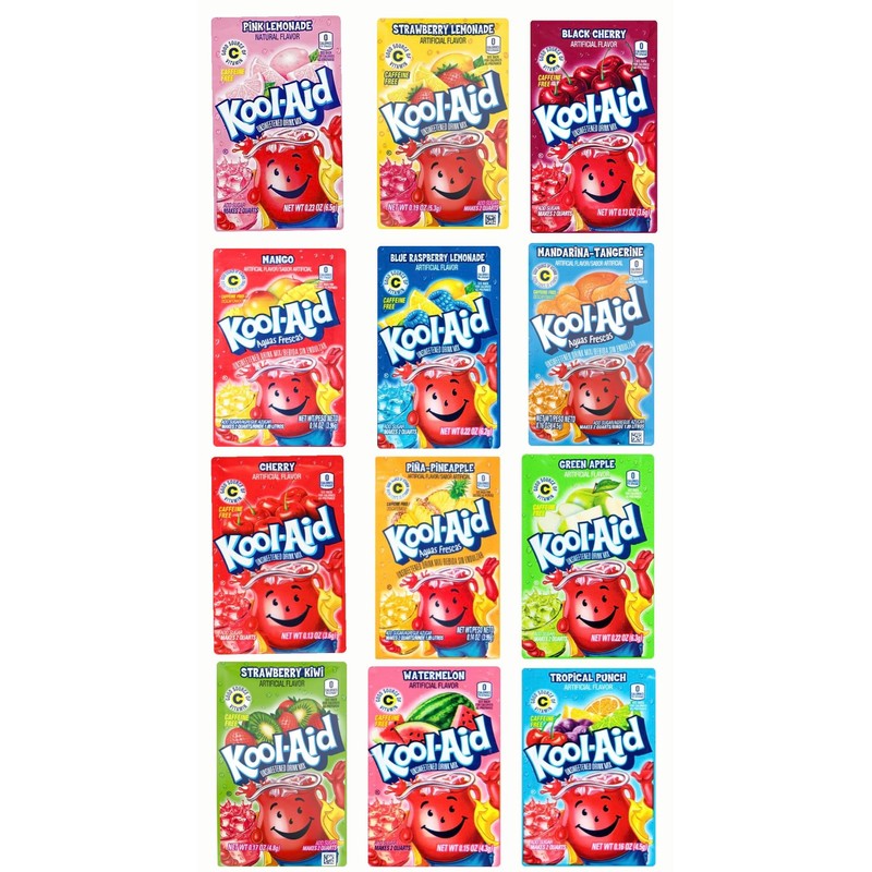 - VARIETY PACK: Contains 12 sachets of randomly selected Kool-Aid drink mix flavours, including popular options like Cherry, Tropical Punch, and Strawberry