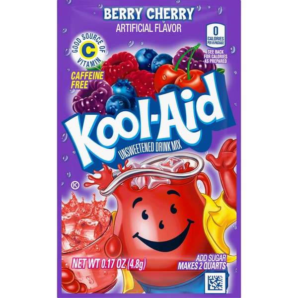 Kool-Aid Unsweetened Drink Mix, Berry Cherry, Caffeine-free, Individually Wrapped, 0.17 OZ, Pack of 48
