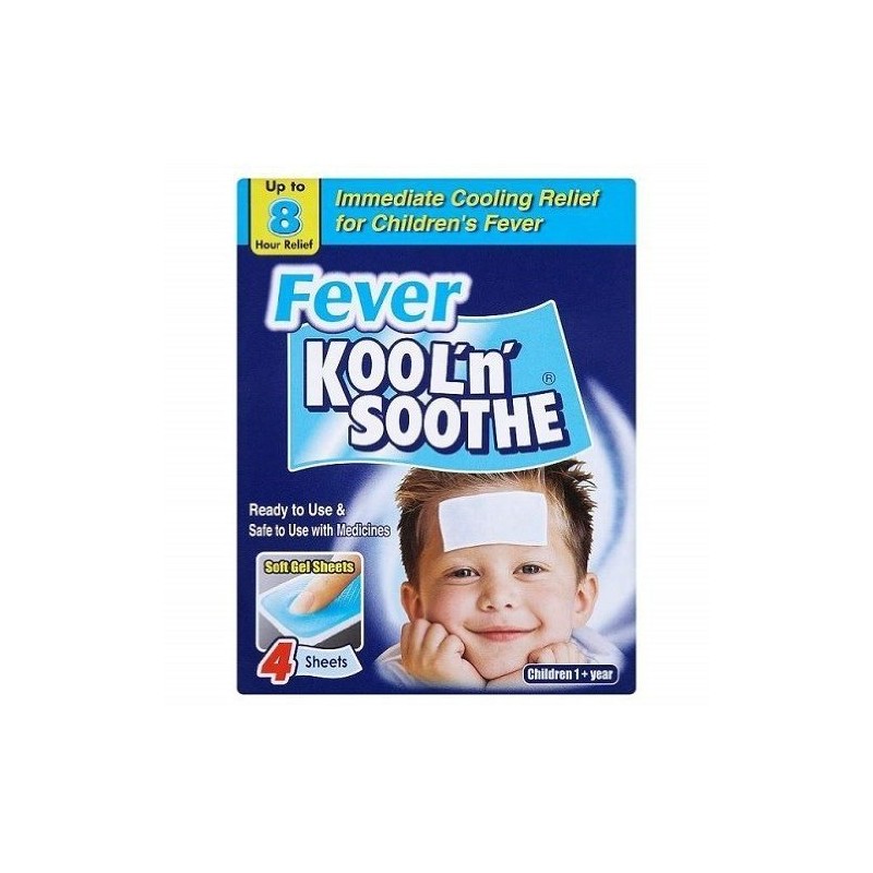 Product descriptionQuick OverviewKool n' Soothe Fever are designed to provide immediate cooling rlief to your hot/feverish child. Kool 'n' Soothe Fever can be used whenever you feel the need for cooling relief to severe discomfort associated with headaches.Indicationsfever, headaches