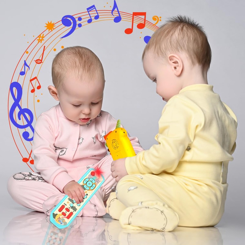 - Engaging Lights & Music: Both toys feature colourful LED lights and engaging sound effects, keeping infants captivated. The phone includes multiple songs and animal sounds, while the remote control mimics real-life remote functions with playful sounds.