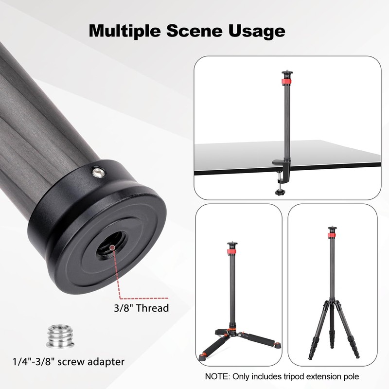 Koolehaoda Tripod Extension Pole, Center Column Extender 28" Carbon Fiber Tripod Extender Tube Telescopic Stick Rod with 1/4" to 3/8" Screw Compatible with Tripod/Gimbal/Camera, Max Load 33lb
