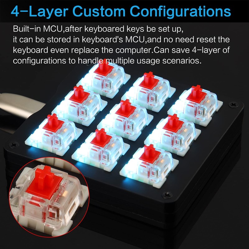 - 【4-Layer Custom Configurations】 Built-in MCU, after keyboard keys be set up, it can be stored in keyboard's MCU, and no need reset the keyboard even replace the computer. Can save 4-layer of configurations to handle multiple usage scenarios. Perfect not only for gamers but also for so many other types of users including designers and video editors