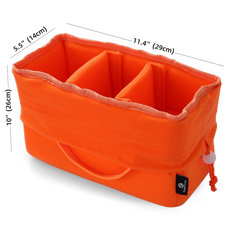 Koolertron Padded DSLR Camera Insert Shockproof Camera Bag Insert Camera Partition Protective Bag compatible with SONY Nikon DSLR Shot Or Flash Light (Orange) (Red)