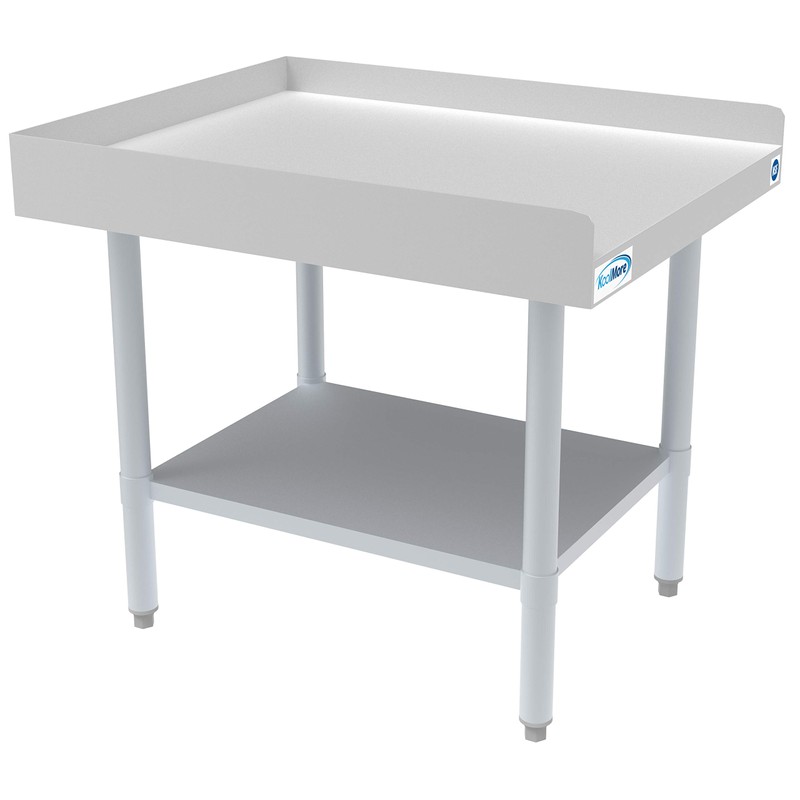 The KooMore equipment stand is built with 16 gauge heavy duty stainless steel it is durable and sturdy and has a weight capacity of 660 Lbs. It can accommodate all types of commercial equipment from griddles to ice machines, charbroilers beverage dispensers, slushy machines, Espresso machines, or mixer. The galvanized steel undershelf has a weight capacity of 495 Lbs. and is extremely useful for keeping supplies or ingredients at arm’s reach, it is also adjustable so that you can raise or lower it depending or your particular needs. NSF certification means this table can safely be used in all types of commercial kitchens. Adjustable bullet feet ensure the best possible stability for your valuable equipment. The 2-inch edging will protect your equipment and supplies from slipping off the table, the stainless steel look is super sleek and easy to clean. Overall dimensions 24”L x 30”W x 24
