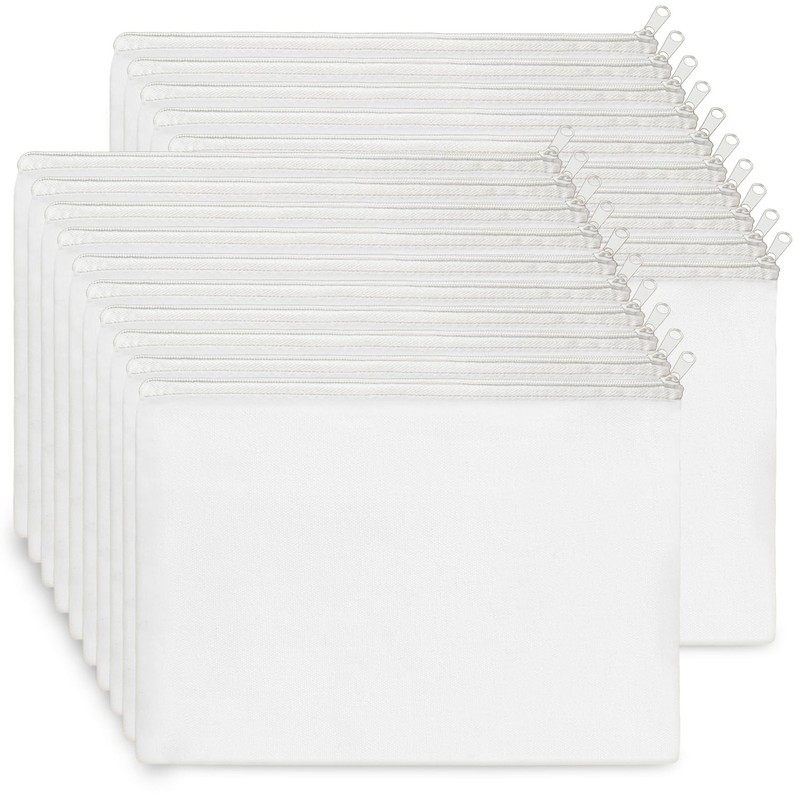Koolmox Plain Makeup Bags, 20 Canvas Pouch, Pencil Pouch Bulk White Cotton Canvas Makeup Bag, Multipurpose Cosmetic Bag with Zipper Travel Toiletry Pouch, Blank DIY Craft Bag for Painting Printing