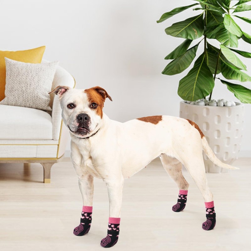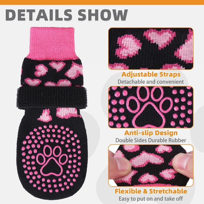 KOOLTAIL KOOLTAIL Anti Slip Dog Socks for Hot/Cold Pavement to Prevent Licking Paws,Dog Boots&Paw Protector with Grippers for Hardwood Floors,Pink Heart Valentine's Socks Booties for Small Medium Large Dogs SM