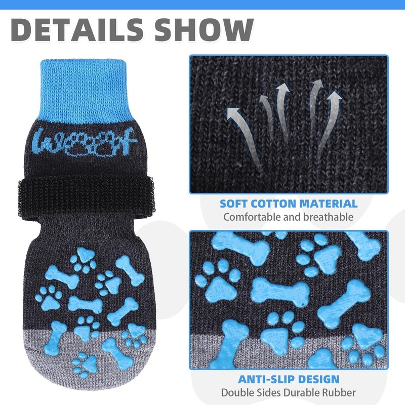 KOOLTAIL Non-slip dog socks, double-sided handles, Woof dog socks for licking to prevent scratches on hardwood surfaces, outdoor dog shoes and paw protection for small, medium and large