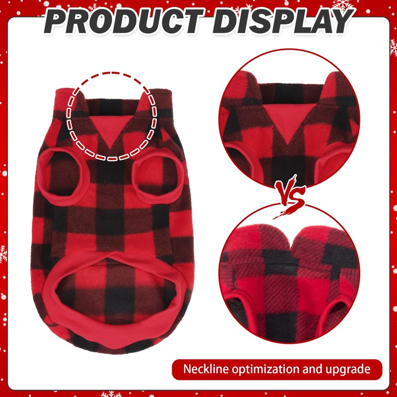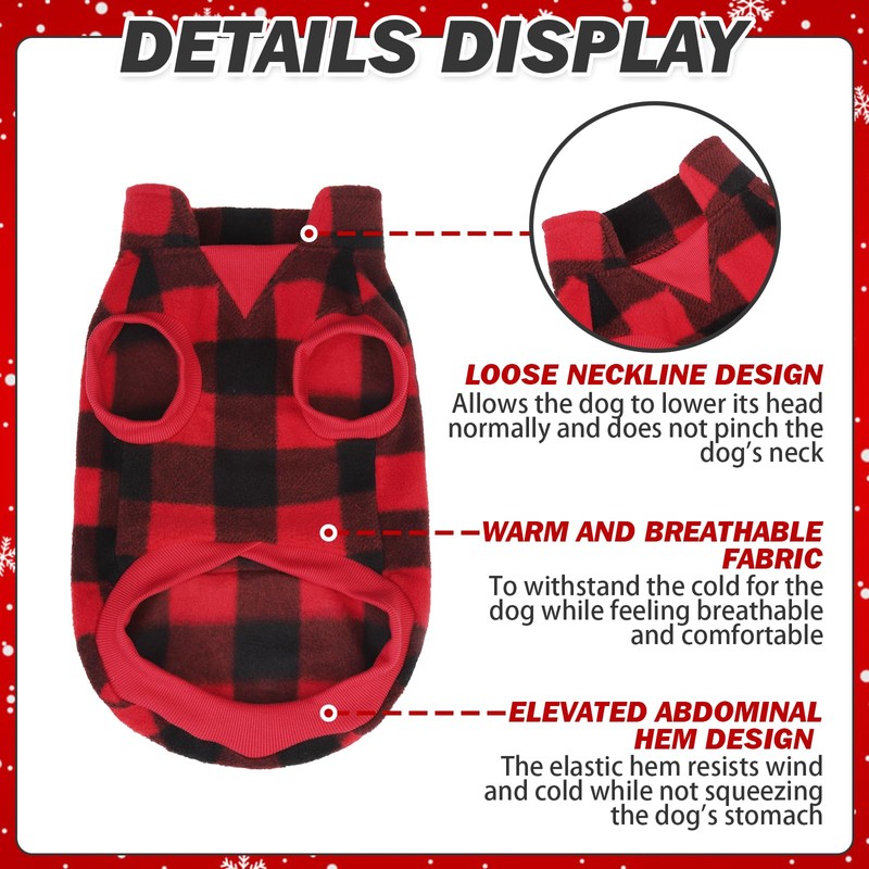 - FEATURES: Red plaid design, classic but never out of date, big pocket design makes dogs more cute. The vests are stretchable with red thread. The neckline adopts a loose design, which won't get stuck in the neck even when the dog lowers its head. More comfortable and safe. The hem has also been raised slightly in the belly, so it won't pinch the dog's stomach.