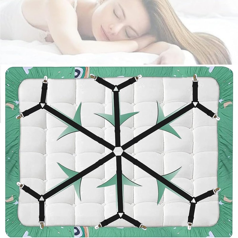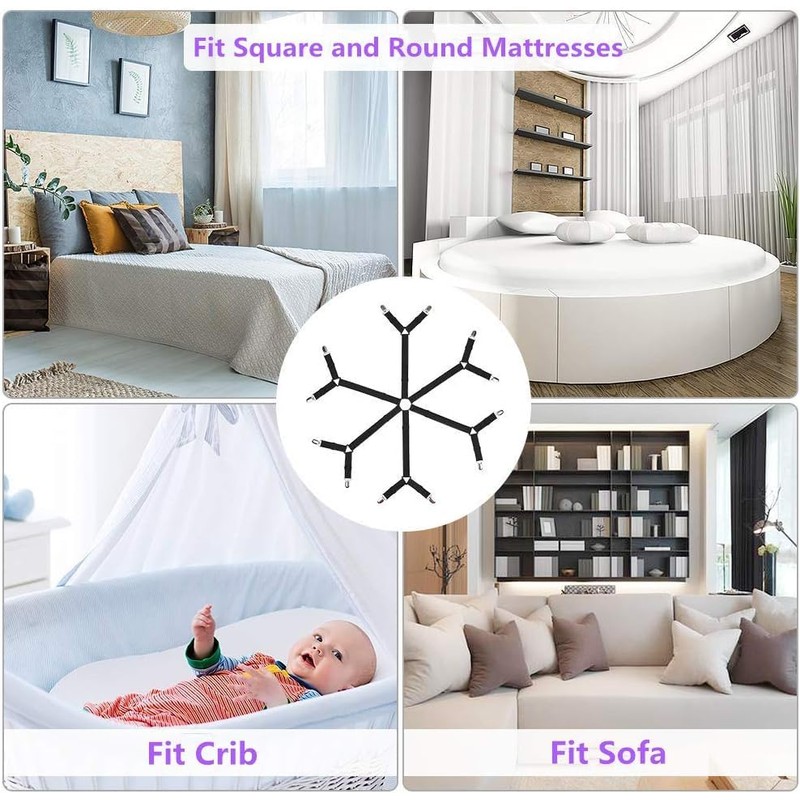 Koomooloo Bed Sheet Fasteners,Sujetadores para Sábanas, 6 Lados Ajustables Elásticos Correas Cama Clips con 12 Clips de Metal para Colchones Sofá de Tamaño Redondo y Cuadrado