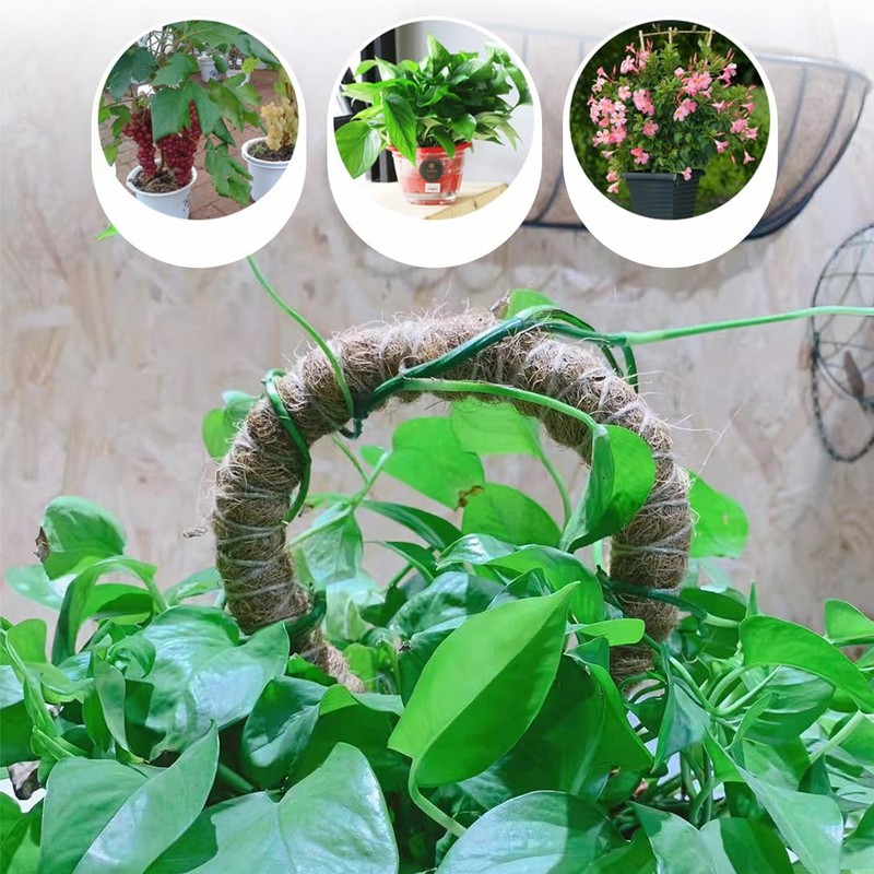 Sturdy Support The sturdy sharpened wood tip allows it to insert into soil easily, providing strong support for the plant extension. The rope wrapped around the pole tighten the coir moss firmly for long-last use.
