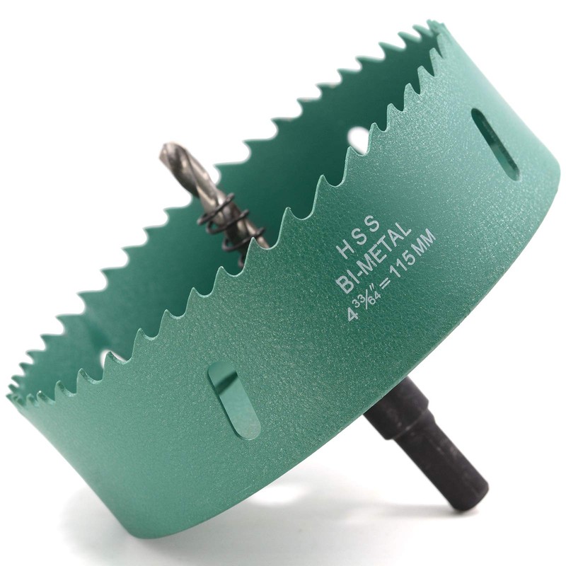 - Pakage Include: 1 x 115mm hole saw; 1 x arbor; 1 x replacement M42 Steel pilot drill bit; 1 x hex key