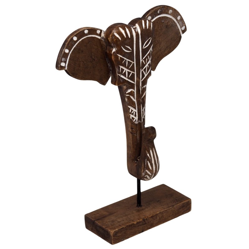 Koopman International Handcrafted Rustic Wooden Elephant Head Sculpture - Tribal Design on Stand