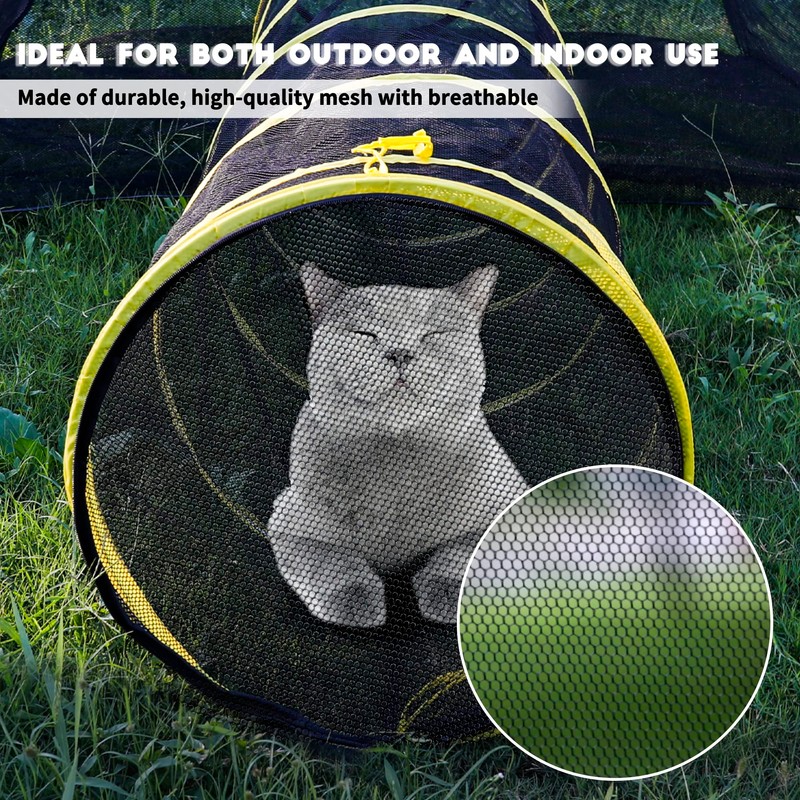 - 【ALLOWS PETS TO SAFELY ENJOY A DAY OUTSIDE】Allows indoor cats dogs pets to enjoy a safe day in the sun outside habitat, safe from predators. Breathable mesh fabric keeps your indoor cats closer to nature, which protects them from annoying birds without worrying about them getting hurt or running away. Chase each other through the tunnels and tents, provides hours of exercise & self-amusement. We recommend testing the playhouse indoors prior to outdoor use