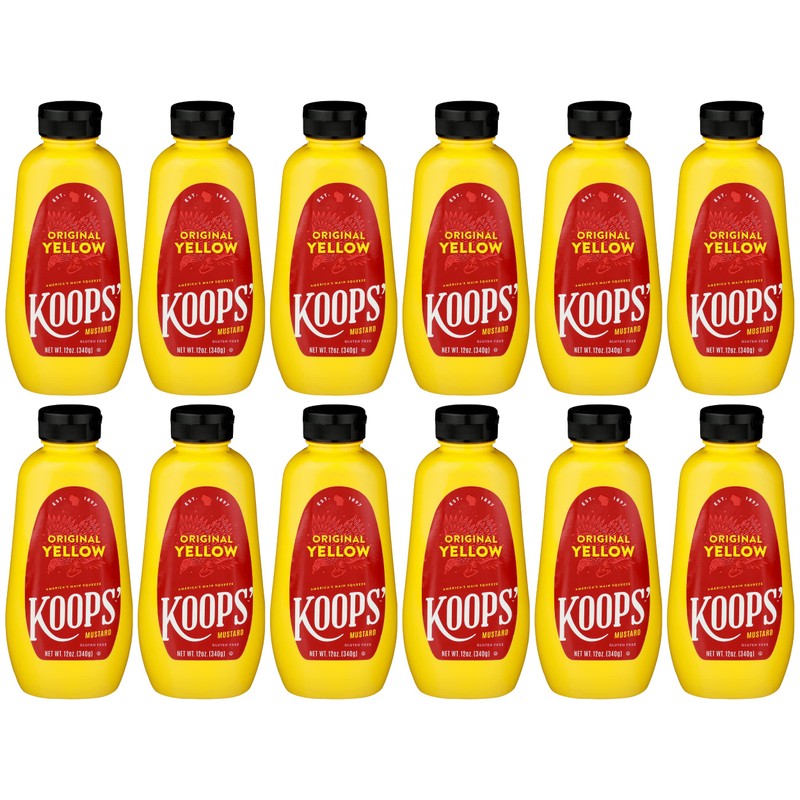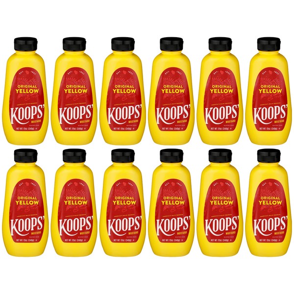 Koops' Original Yellow Mustard – Gourmet Mustard, Gluten-Free, Kosher, Made in USA, From Quality Mustard Seeds, Yellow Mustard Sauce – 12 Oz, Pack of 12