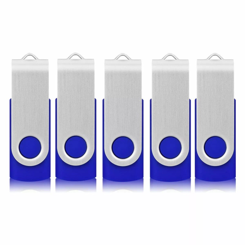 Kootion Blue USB 2.0 5 Pack 16GB Metal Swivel Style USB Flash Drive Memory Storage