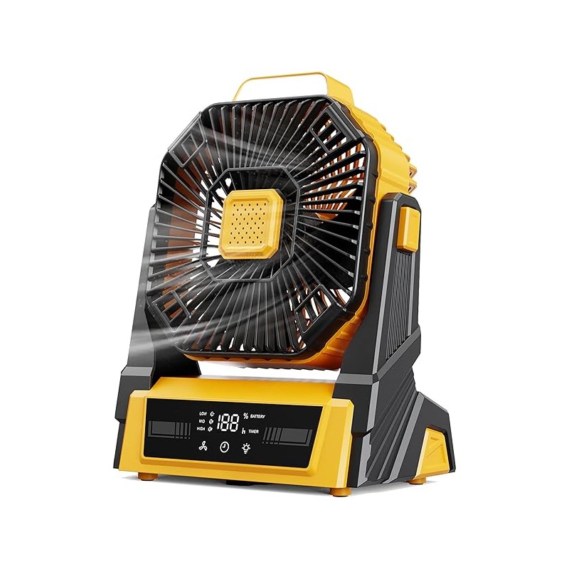 KopBeau Portable Camping Fan with Lights, 20000mAh Rechargeable Battery Operated Fan, Battery Powered Outdoor Beach Tent with 3 Speeds & Hook, Personal USB Table for Camping Accessories