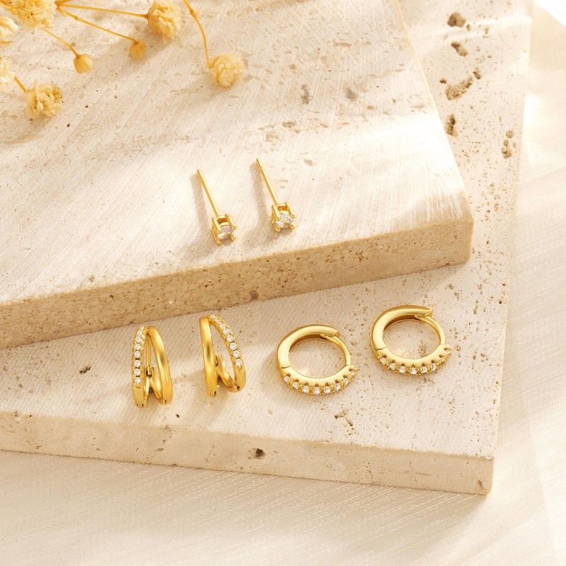 - Dainty Earrings Set: These small and cute gold cz hoop earrings are perfect for all day wear as they are lightweight and have a simple yet exquisite design that can easily be combined with any of your everyday outfits.