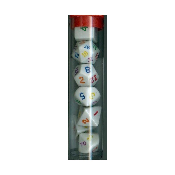 - Includes 4, 6, 8, 10, 10 (tens), 12, and 20 sided dice