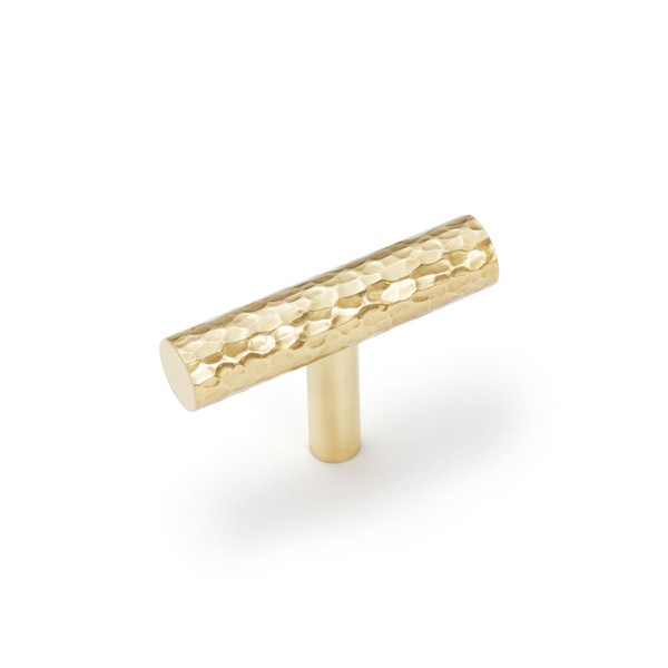 KOPPALIVE 6-Pack Solid Brass Kitchen Cabinet Pulls, Gold Modern T-Bar Handles, Single Hole Hammered Knobs for Dresser Drawer Cupboard, 1-15/16 Inch Total Length, Polished Finish