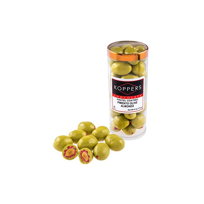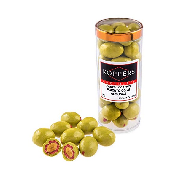 Koppers Pimento Olive Chocolate Almond, 6oz Package, with Melt Protection