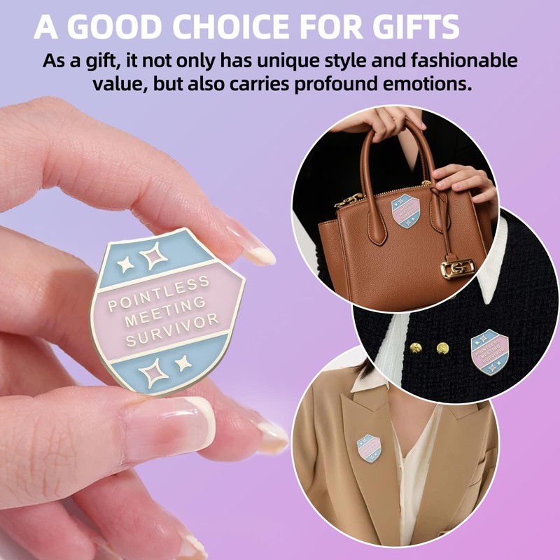 - Unique & Stylish Design: Show off your survivor spirit with this eye-catching "Pointless Meeting Survivor" badge, featuring bold typography and a sleek finish.Its retro-inspired aesthetic adds a playful yet polished touch to any outfit, making it a great conversation starter for the office, parties, or everyday wear.