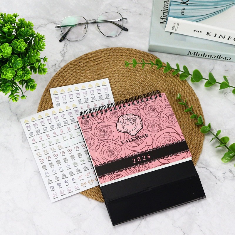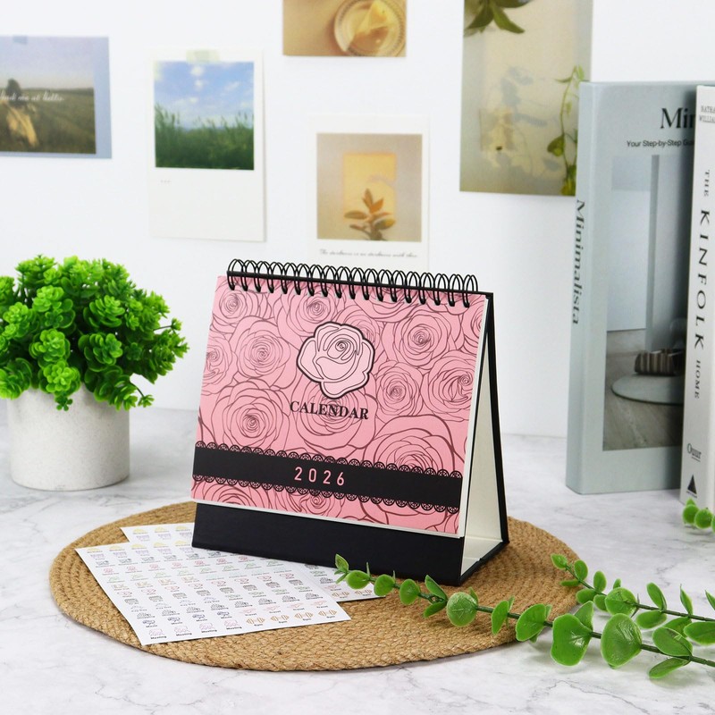 Enjoy long-term planning with this small desk calendar 2025-2026—its flip stand design saves space and flips smoothly. Vibrant monthly designs brighten your desk, while included stickers help organize events like birthdays and appointments. Perfect desk calendar for effortless daily tracking.