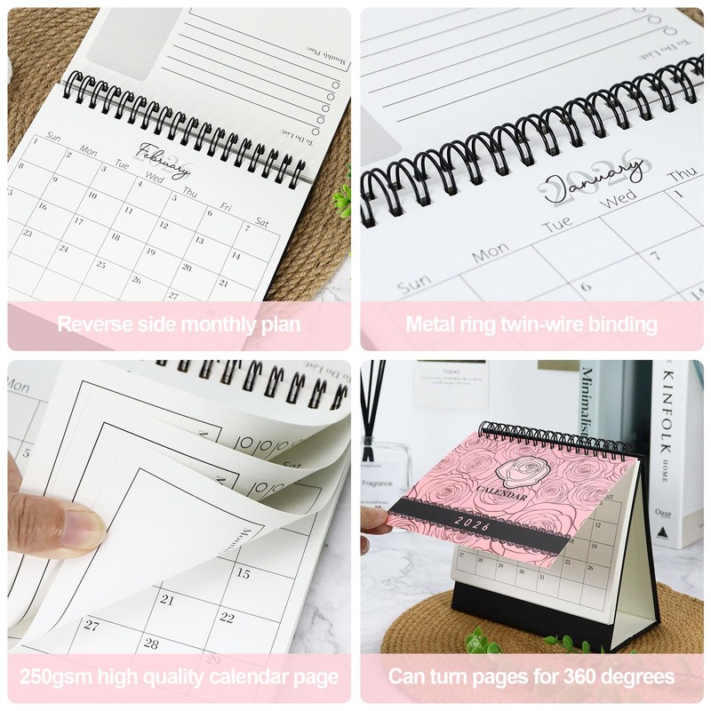 - Durable Paper Construction & Secure Binding: Made from thick, premium paper that resists ink bleed-through. Features a sturdy twin-wire binding and a rigid cardboard backboard, ensuring your flip stand calendar stays upright and pages turn smoothly throughout its 18-month use.