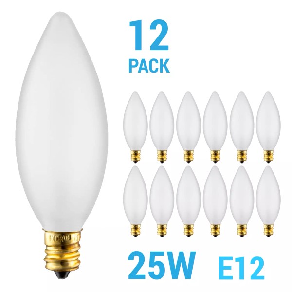 KOR 12 Pack Chandelier Torpedo Tip B10 Bulbs 120V 25W Candelabra E12 Frosted 2700K