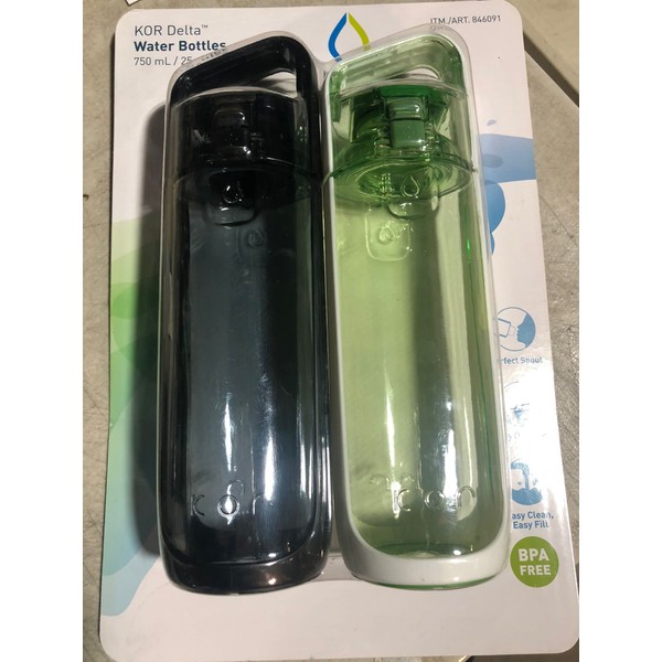 KOR Delta BPA Free Water Bottle, 750ml, 2 PACK, Green/Black
