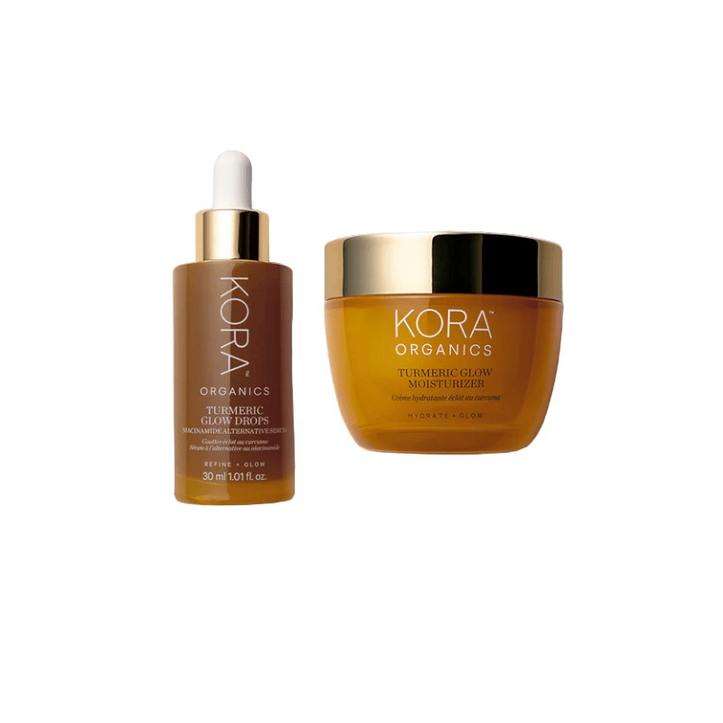 Illuminate your complexion with The Turmeric Duo, a certified organic two-step ritual designed to brighten, balance, and refine skin tone while calming the complexion. Begin with the Turmeric Glow Drops Niacinamide Alternative Serum to smooth texture and even tone. Complete the ritual with the Turmeric Glow Moisturizer, delivering deep hydration and a luminous, healthy glow.