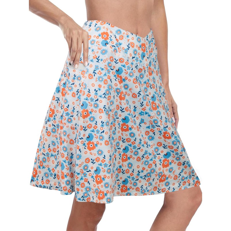 KORALHY Golf Skirt Athletic Skorts for Women with Pockets Knee Length Skirts Summer Tennis Skirts Dressy Casual Blue Floral XL