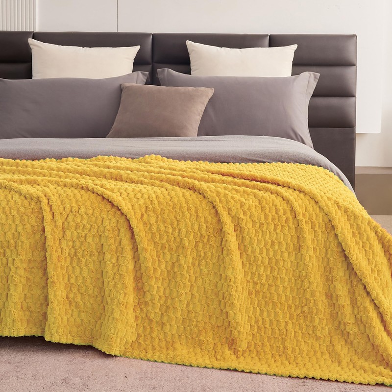 KORBLISS Super Soft Fleece King Size Blanket 90x90 Inches for Bed, Premium Silky with 3D Imitation Turtle Shell Jacquard Decorative Blankets, Lightweight and Cozy for Living Room.Yellow