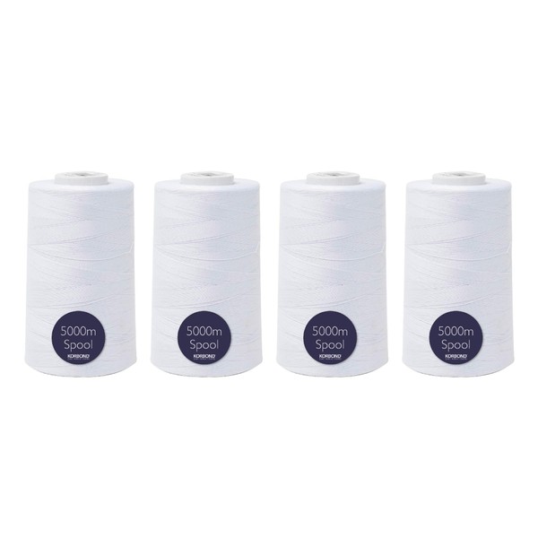 Korbond Overlocking Thread Set White - 4 x White 5000m - 20,000m Spool Polyester Sewing Thread - for Overlocker Machine